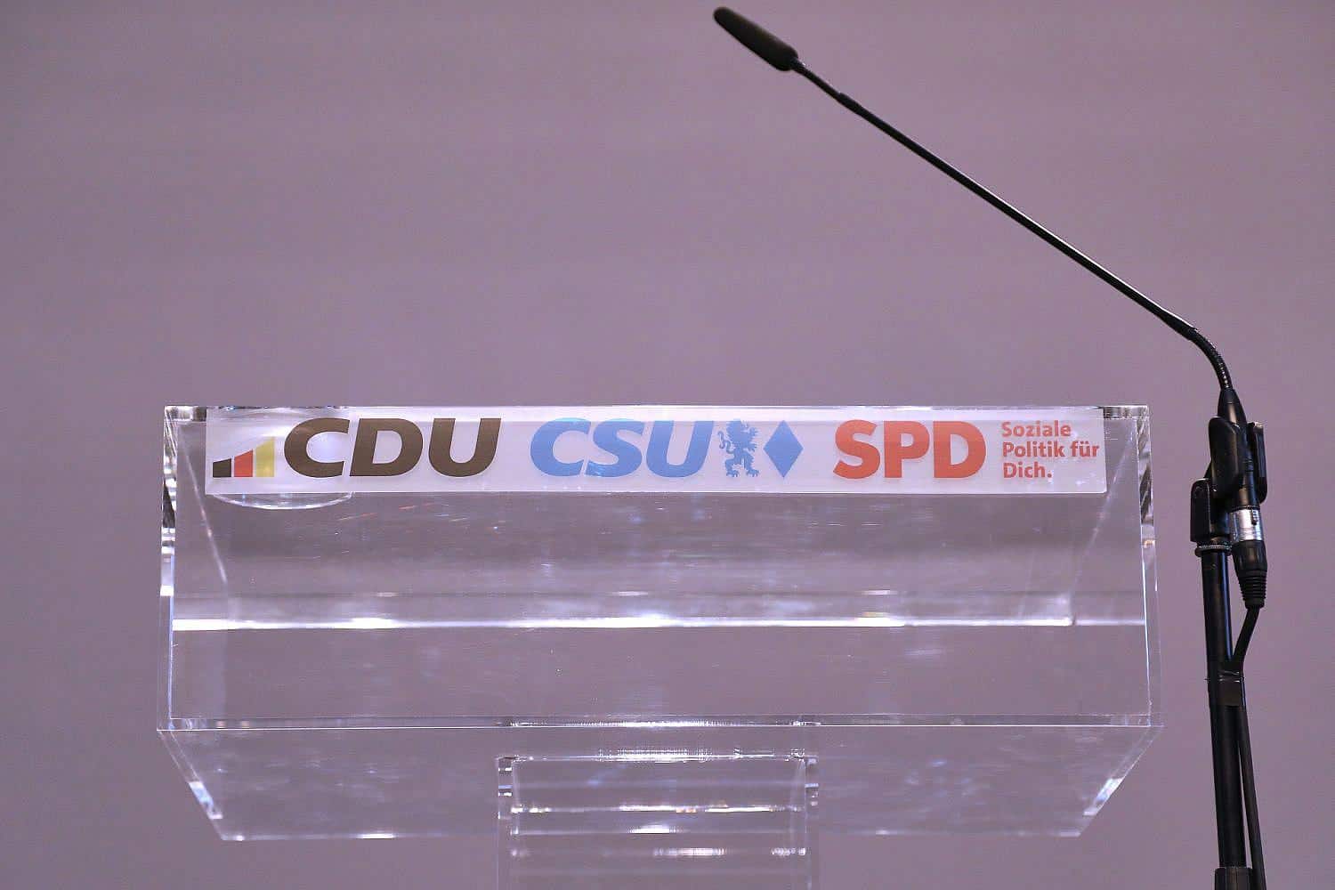 | Bildhinweis: | Rednerpult mit den Logos von CDU, CSU und SPD (Archiv) |