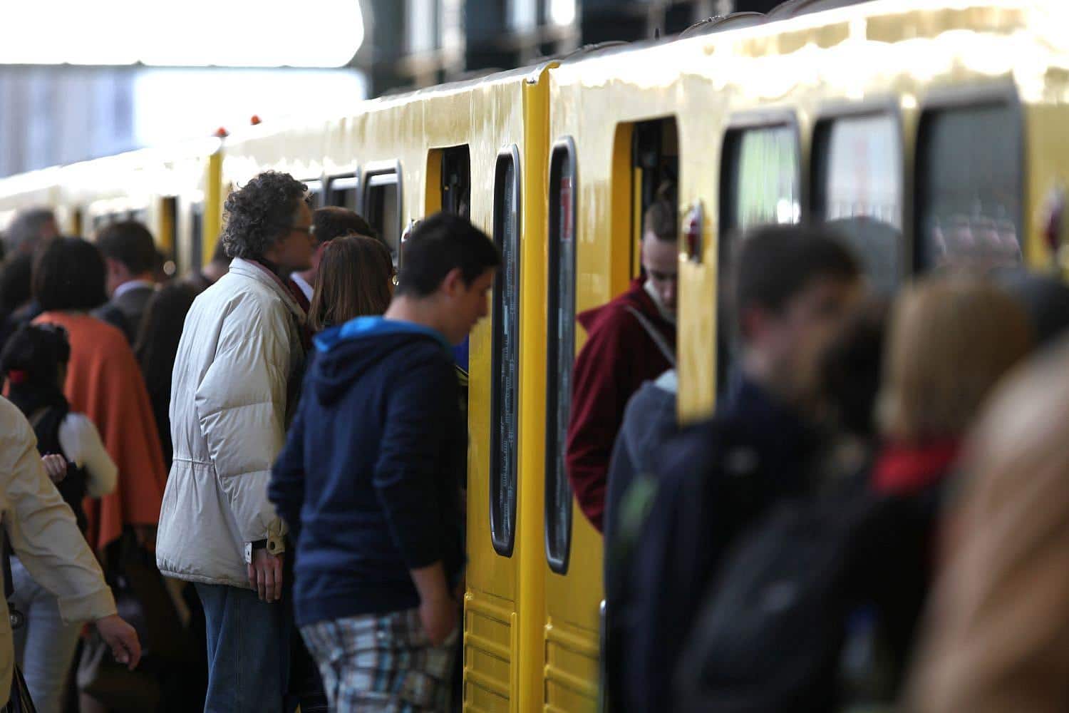 | Bildhinweis: | Fahrgäste am Bahnsteig einer Berliner U-Bahn |