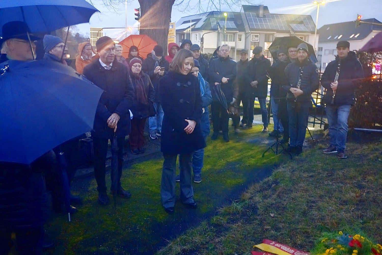 - Rund 40 Personen nahmen trotz schlechten Wetters an der Gedenkveranstaltung auf dem jüdischen Friedhof teil.