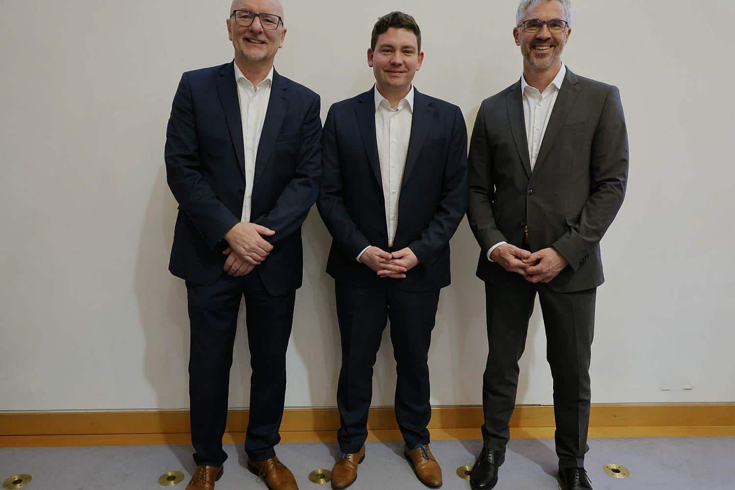 | Bildhinweis: | Thomas Haslinger (CSU/Mitte) mit dem scheidenden Amtsinhaber Alexander Putz (CSU/links) und dem unterlegenen Stichwahl-Bewerber Christoph Rabl (Grüne) am 22.03.2026, Stadt Landshut via |