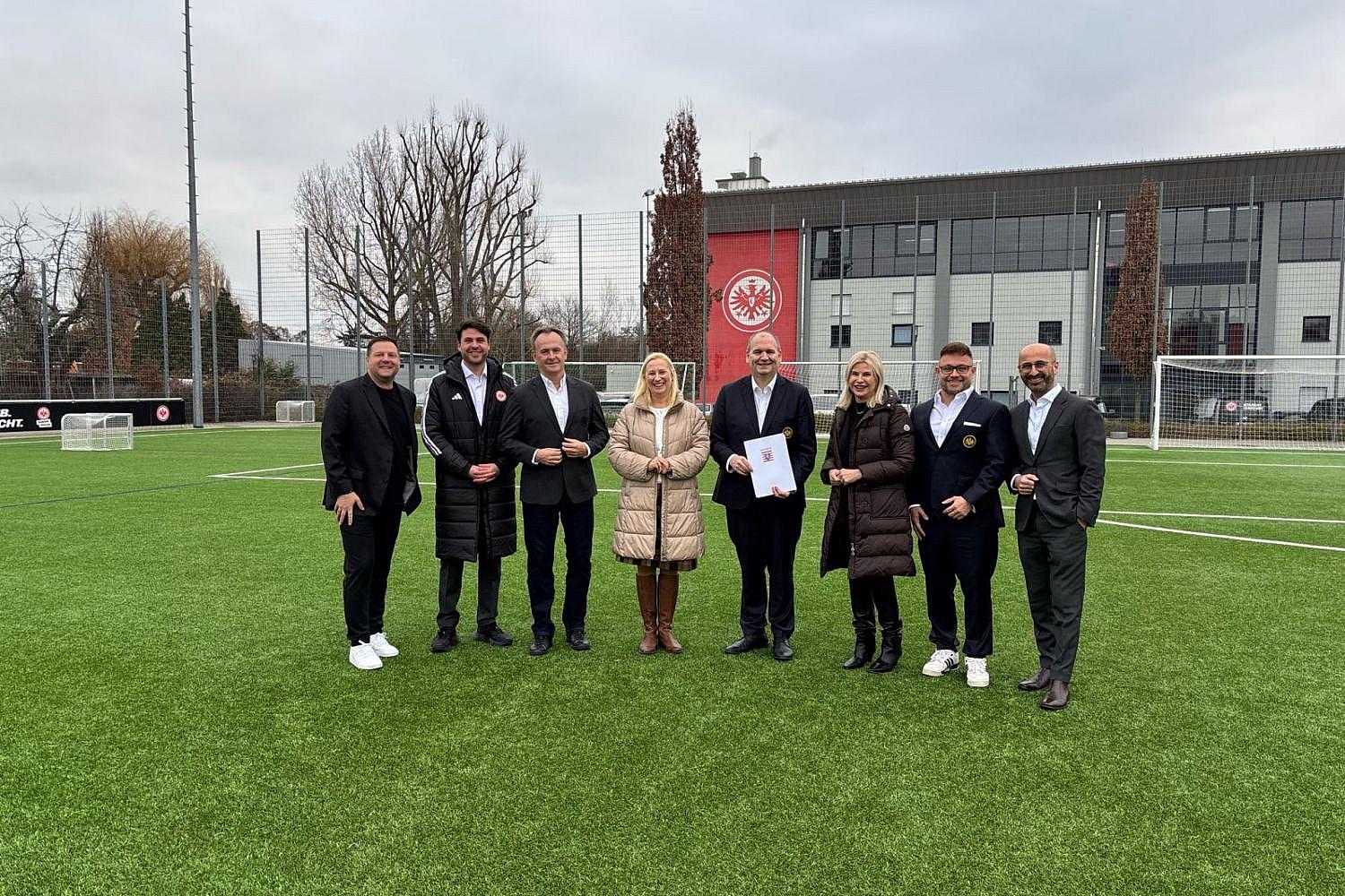 - Hessische Sportministerin Diana Stolz überreicht Förderbescheid über eine Million Euro für ein Nachwuchsleistungszentrum bei Eintracht Frankfurt.