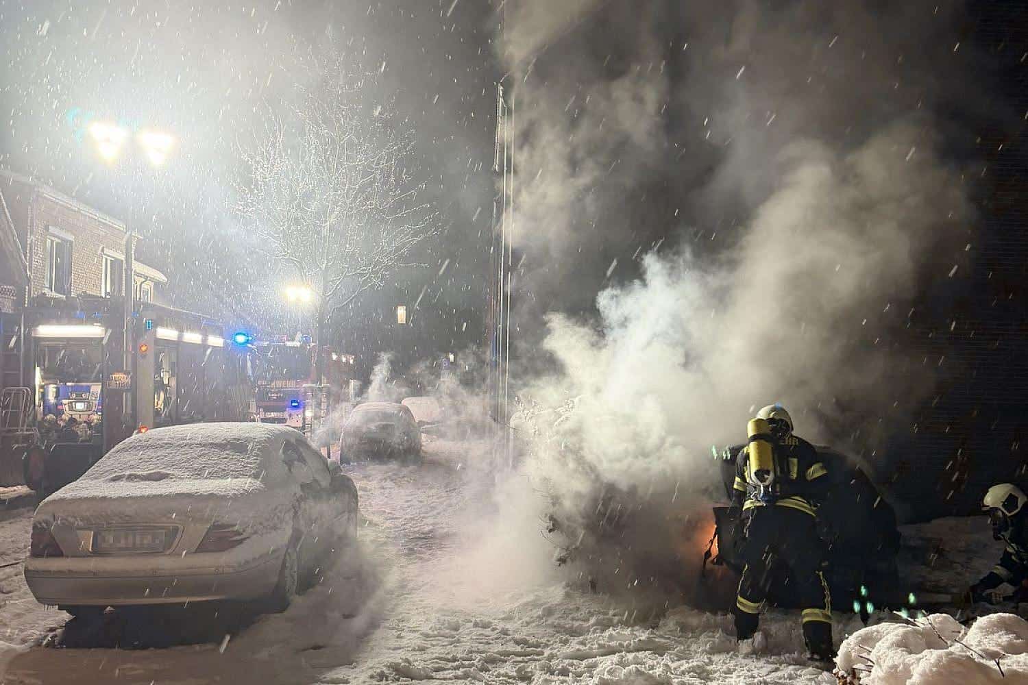 | Bildhinweis: | Fahrzeugbrand in dichtem Schneetreiben bekämpft, Daniel Gerock (Feuerwehr Aurich) via |