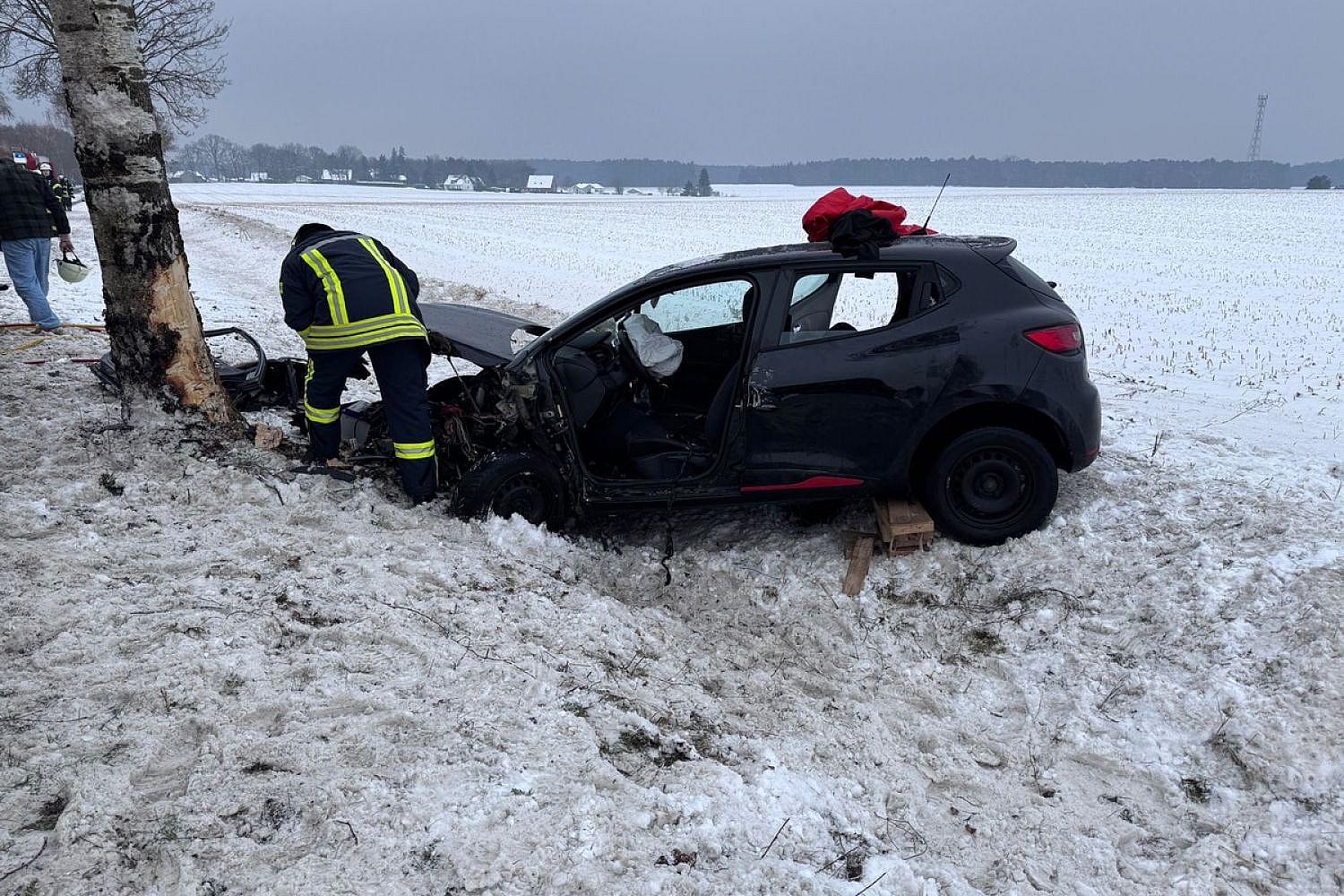 - Pkw gegen 11:34 Uhr von der Straße abgekommen und Baum gerammt
