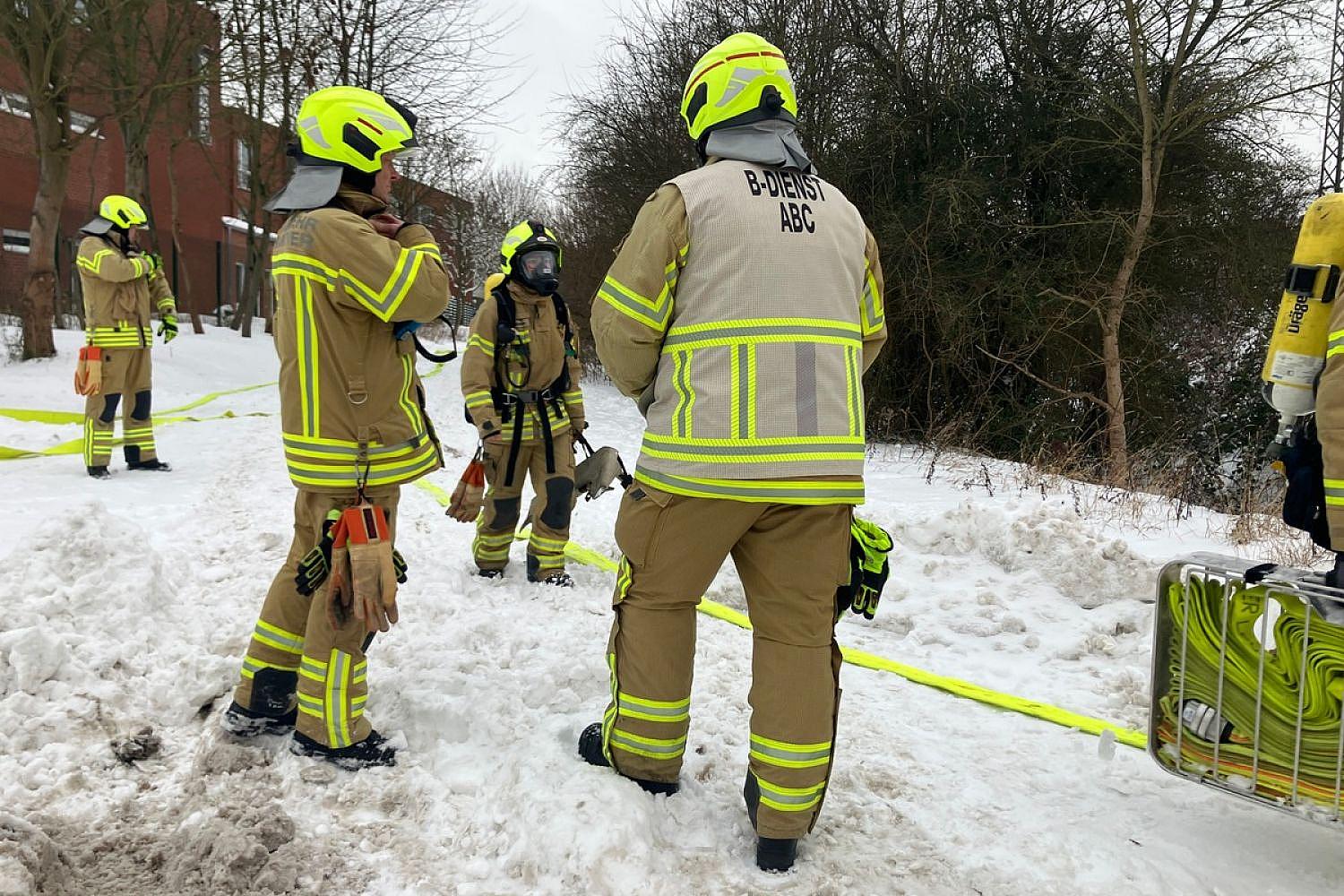 Gegen 9:30 Uhr hatte die Regionsleitstelle die Meldung über den Gasaustritt auf dem Gelände des Zweckverbandes Abfallwirtschaft Region Hannover in der Schörlingstraße erhalten. Ein Großaufgebot mit speziellem Löschmittel und Messtechnik rückte an.