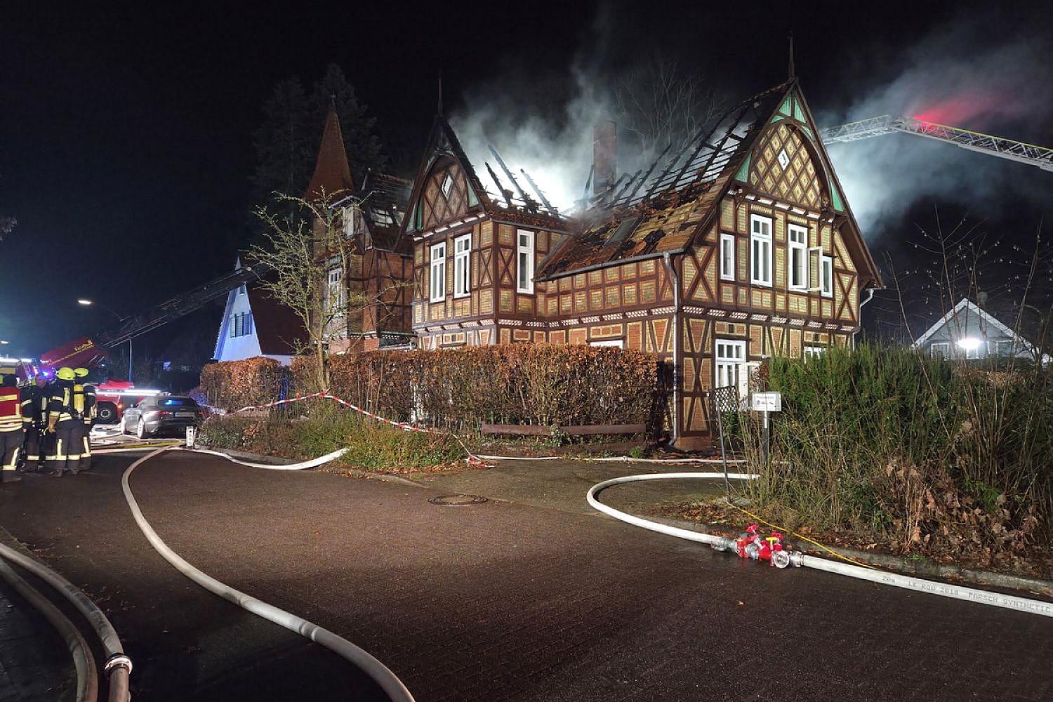 | Bildhinweis: | Das alte Fachwerkhaus wird durch den Brand fast vollständig zerstört (Archiv), Kreisfeuerwehr Rotenburg (Wümme) via |
