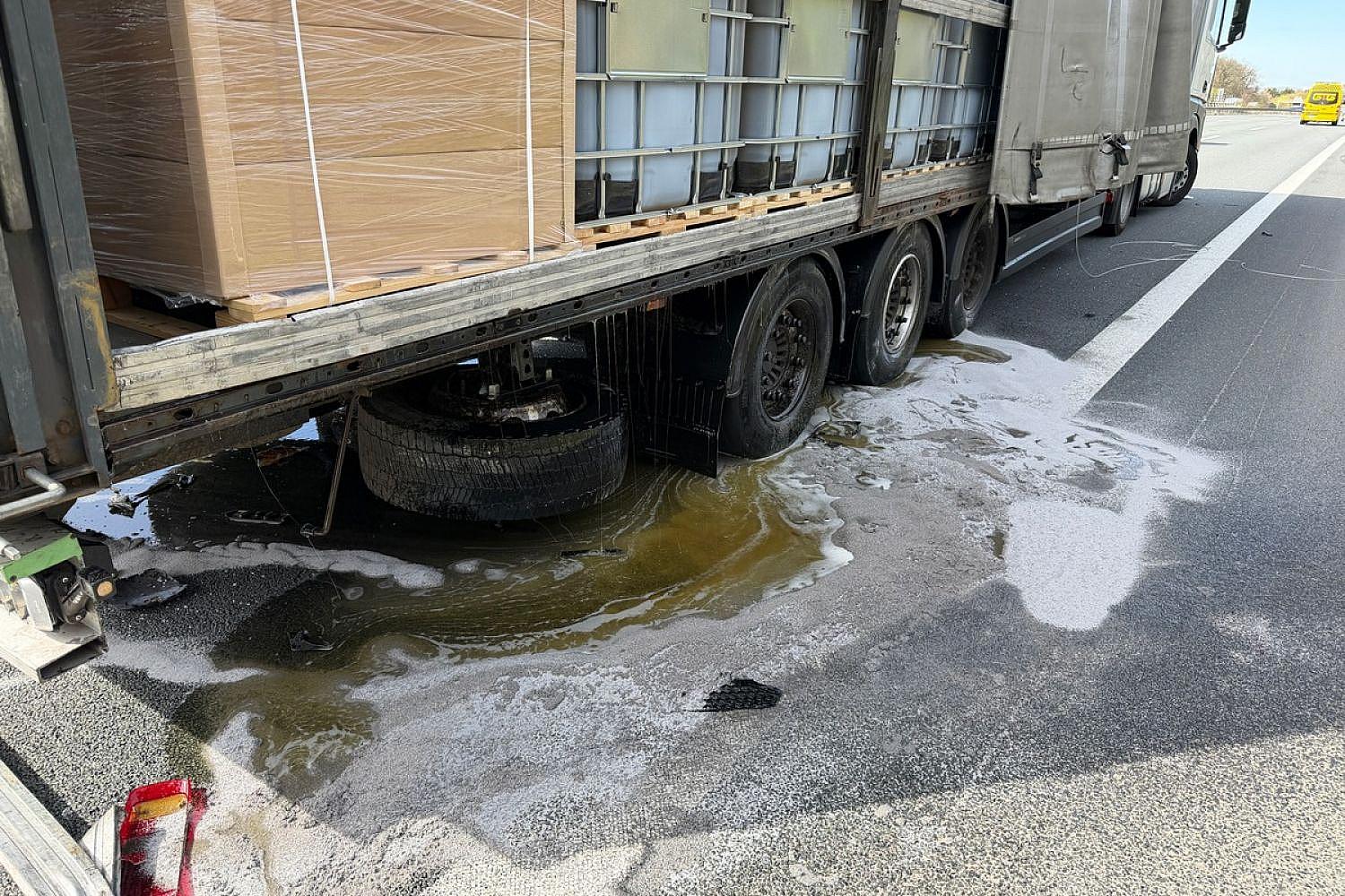 Eine Gefahrguttafel war nicht vorhanden. Später stellte sich heraus, dass es sich um ein chemisches Vorprodukt handelt, das in diesem Zustand nicht als Gefahrgut eingestuft wird.