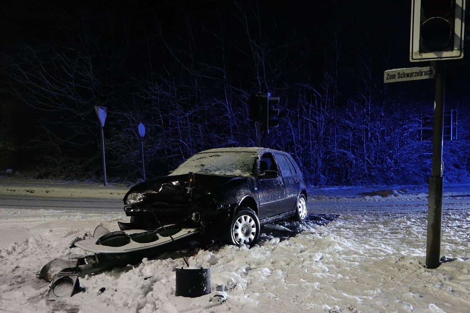 Ratingen () – Eine alkoholisierte Autofahrerin ist in Ratingen von der verschneiten Straße abgekommen und hat eine Ampelanlage gerammt. Das teilte die Kreispolizeibehörde Mettmann am Montag mit.