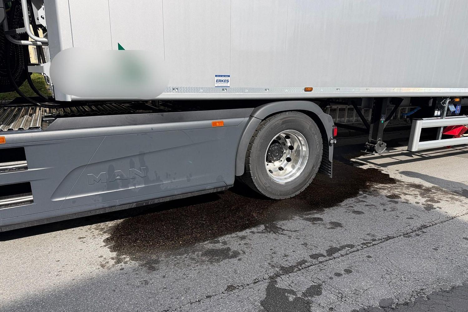 - Dieselkraftstoff ist aus einem beschädigten Lkw-Tank ausgelaufen.
