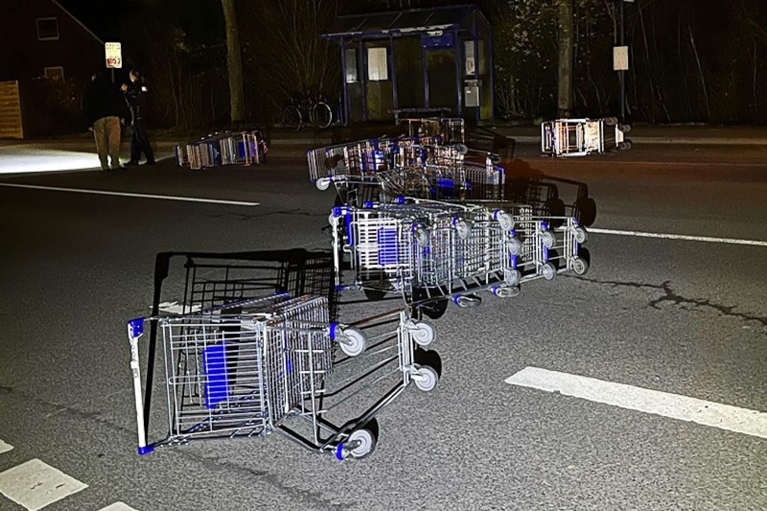 - Unbekannte, die die Einkaufswagen auf die Straße gelegt haben