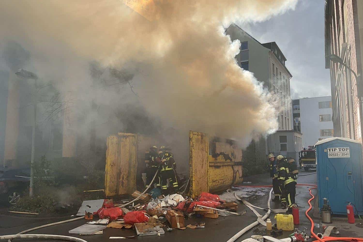 Beim Eintreffen der Feuerwehr bestätigte sich die Lage: Der Container stand in voller Ausdehnung in Flammen. Da sich der Brandherd nur wenige Meter von einem Gebäude entfernt befand, leiteten die Einsatzkräfte umgehend eine Riegelstellung ein, um eine Ausbreitung des Feuers auf das angrenzende Gebäude zu verhindern.