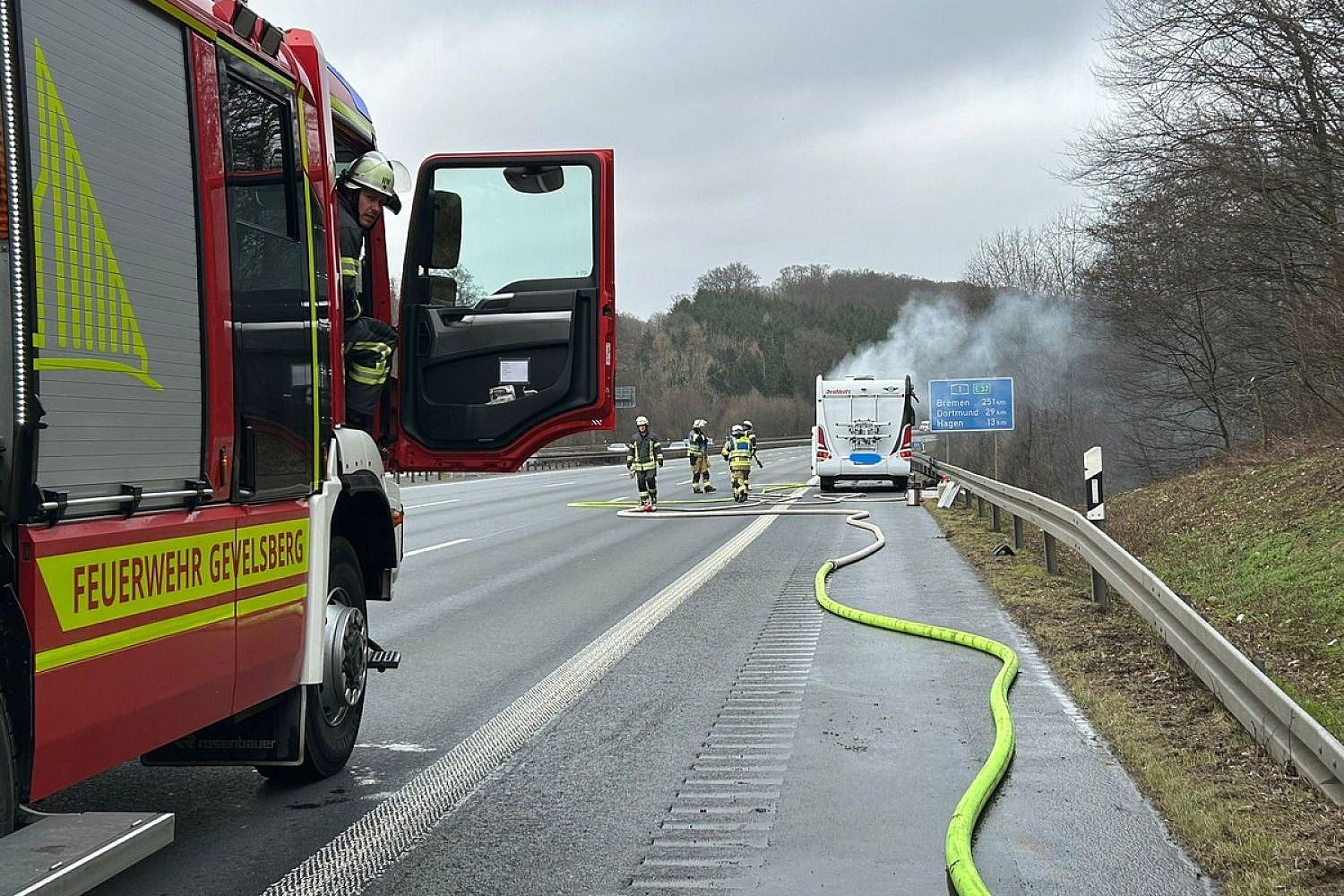 Panorama: Wohnmobilbrand auf Autobahn in Gevelsberg