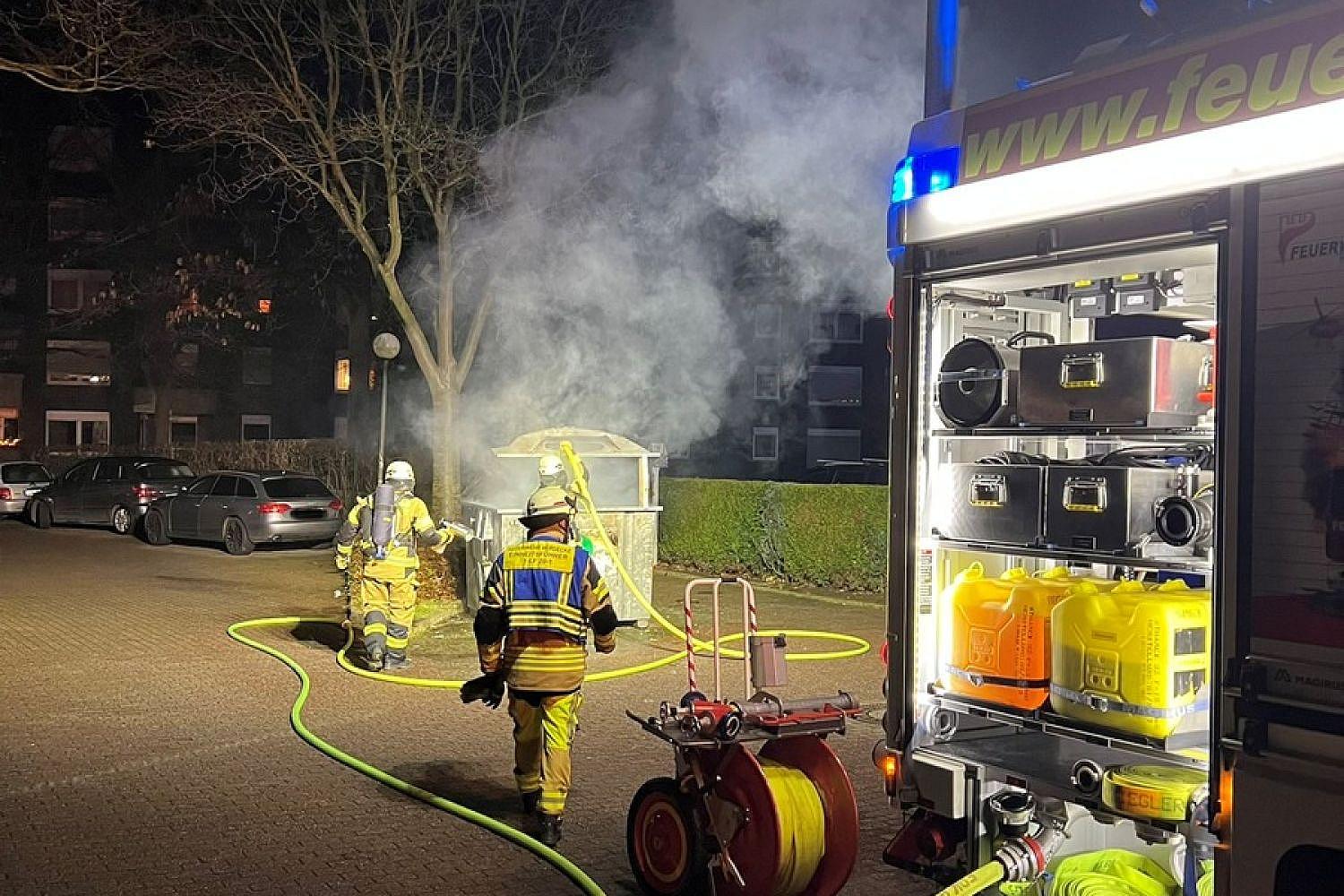 Zunächst seien die Ehrenamtlichen gegen 23:50 Uhr zu einem brennenden Papiercontainer in der Straße Rostesiepen ausgerückt.