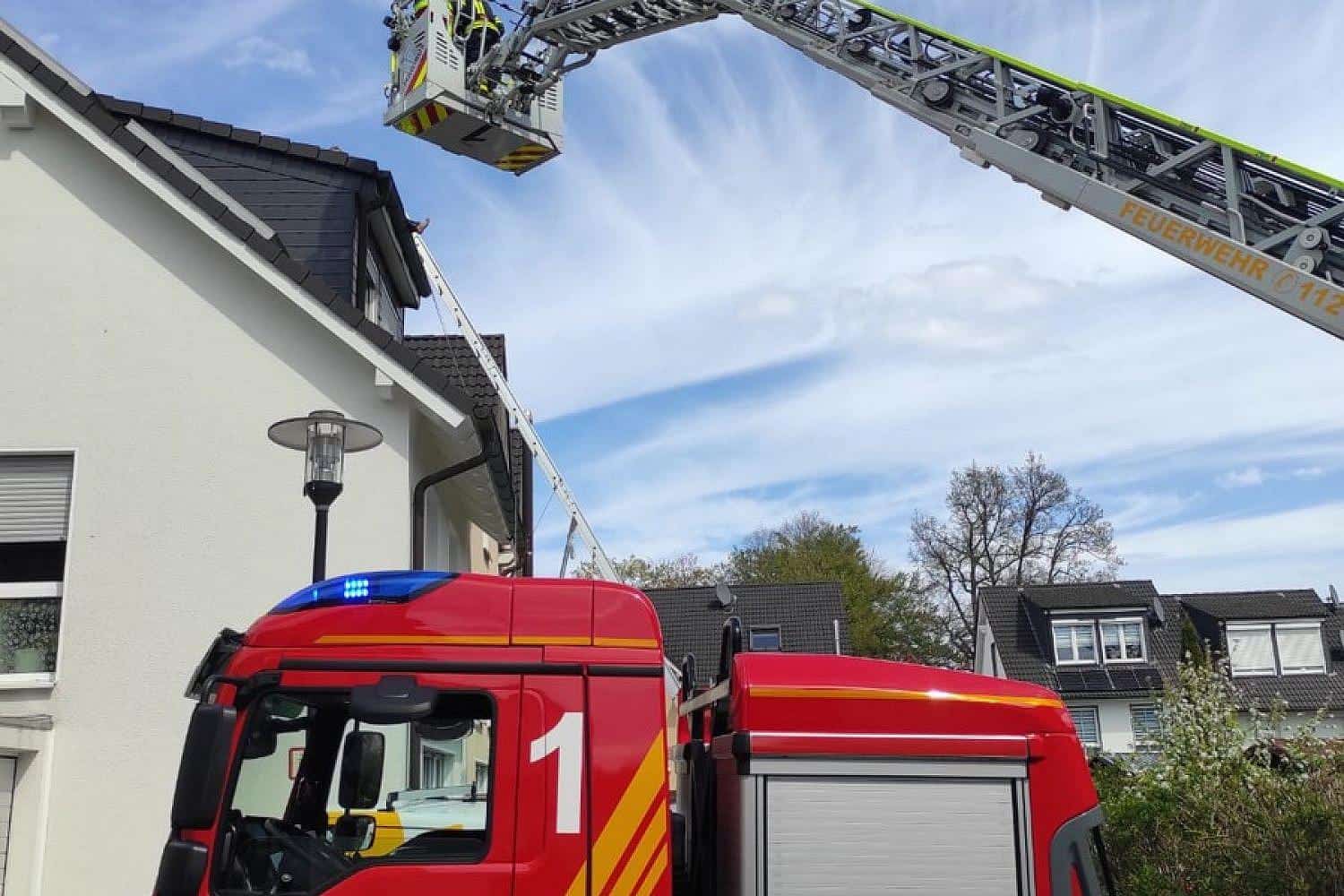 Gegen 13:10 Uhr wurde die Feuerwehr zum Parkweg gerufen. Die Einsatzkräfte brachten den Verletzten mithilfe einer Drehleiter sicher zu Boden.
