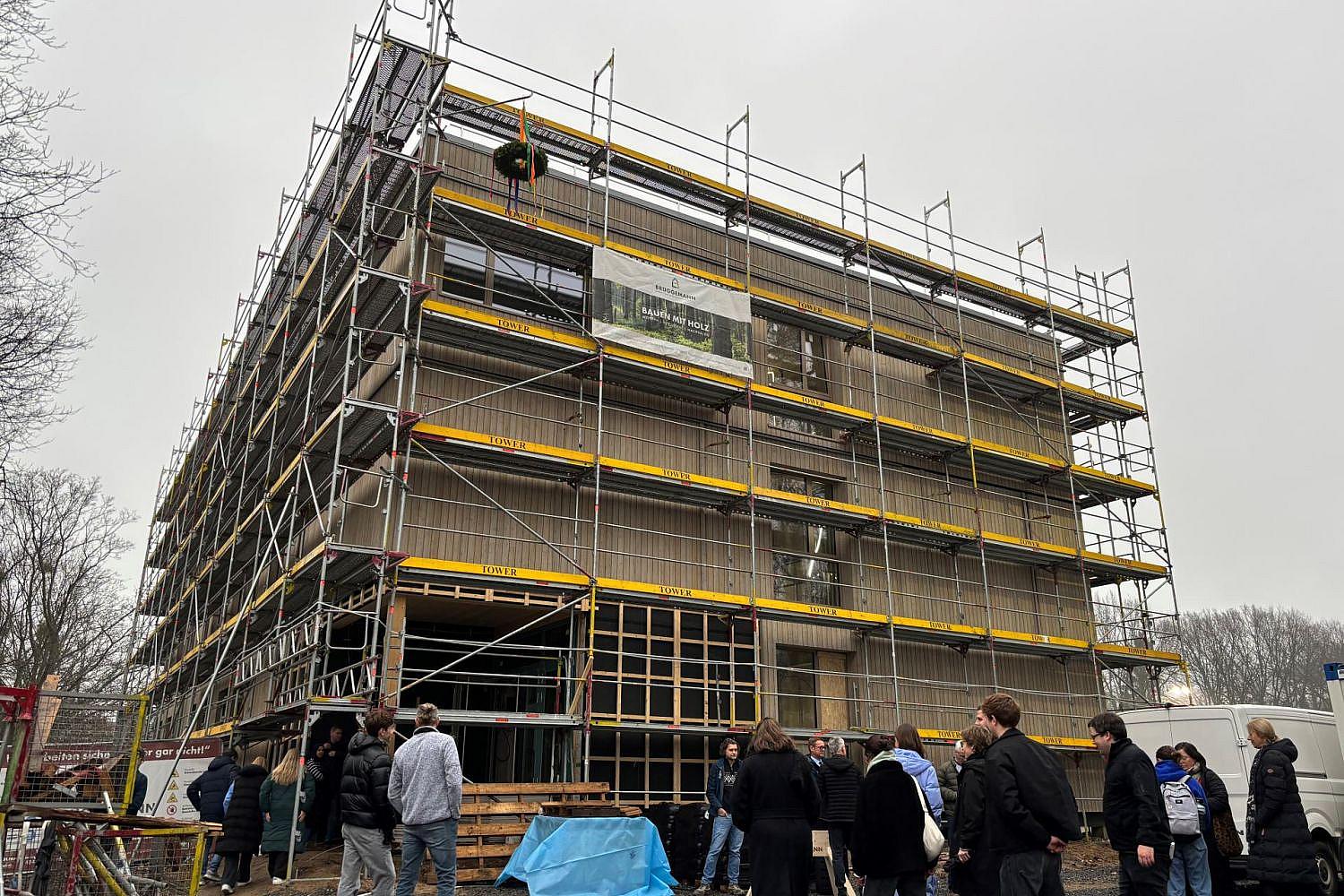 Bergisch Gladbach () – Die Stadt Bergisch Gladbach hat am Mittwoch Richtfest für das neue Interims-Klassenhaus des Dietrich-Bonhoeffer-Gymnasiums gefeiert. Das dreigeschossige Gebäude in modularer Holzbauweise entsteht auf dem Gelände des Sportvereins Jan Wellem und soll pünktlich zum Schuljahresbeginn 2026/27 bezugsfertig sein, wie die Stadtverwaltung mitteilte.