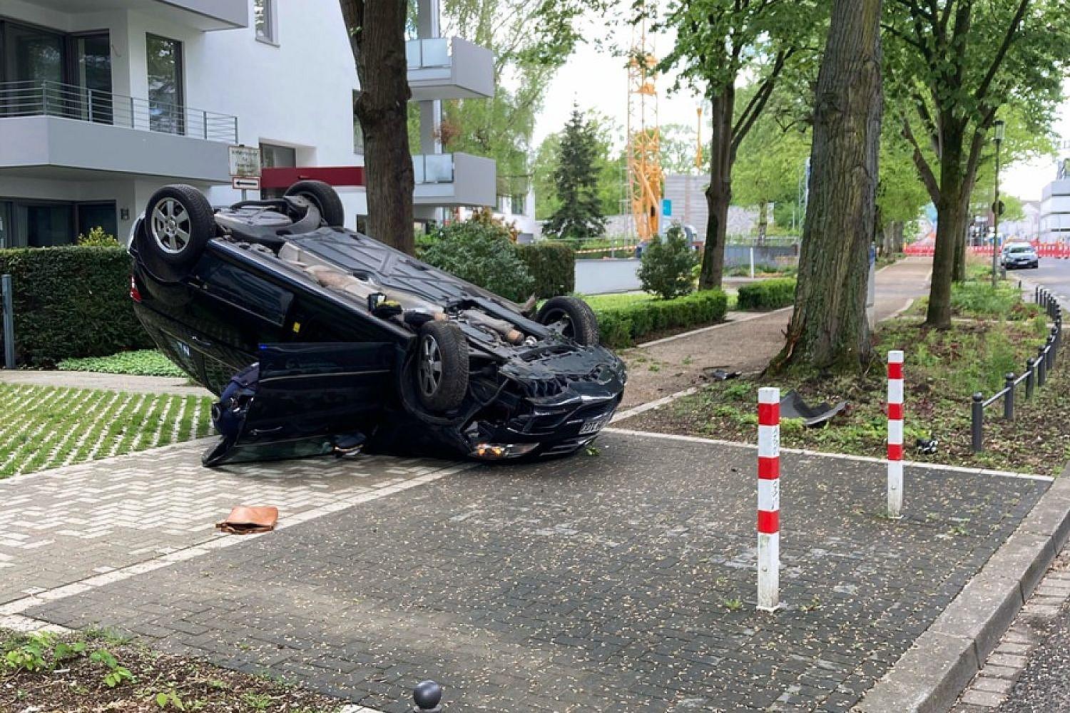 Bei einem Wendemanöver in einer Grundstückseinfahrt fuhr sie über einen Vorgarten und einen Gehweg, bevor sie gegen den Baum prallte. Durch den Aufprall geriet der Wagen ins Schleudern und überschlug sich.