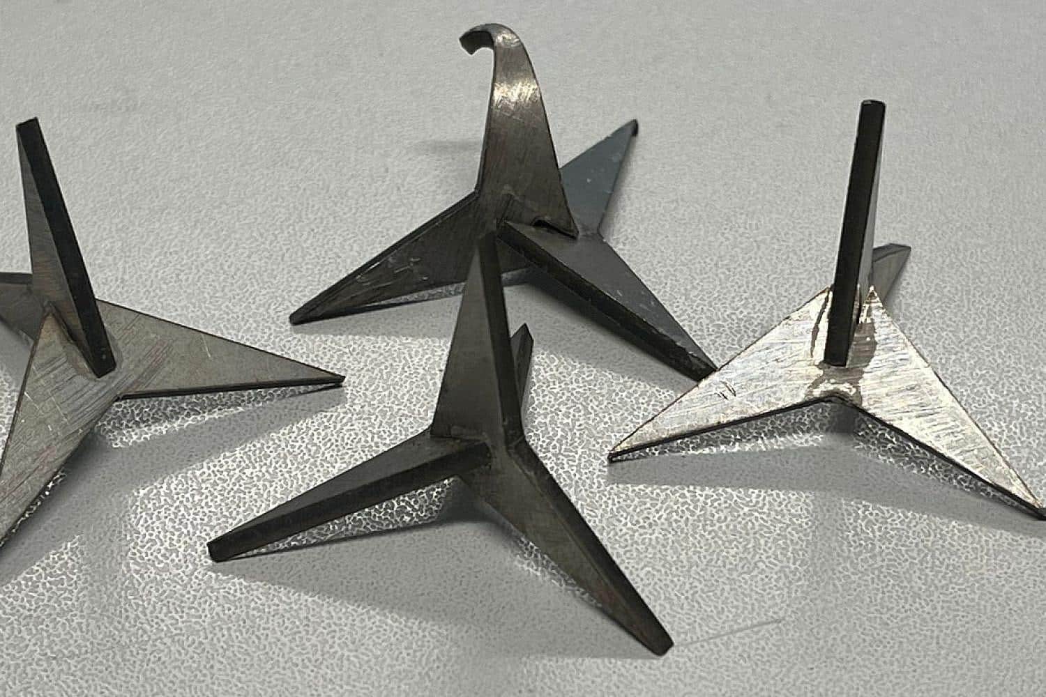 Die Metallstifte sind so geformt, dass sie mit einer Spitze nach oben liegen und Reifen durchstechen können.