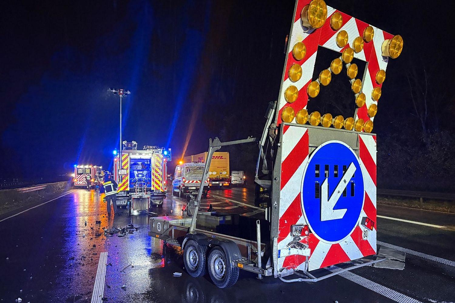- Pkw kollidierte mit Absicherungsanhänger einer Baustelle auf der Autobahn 57.
