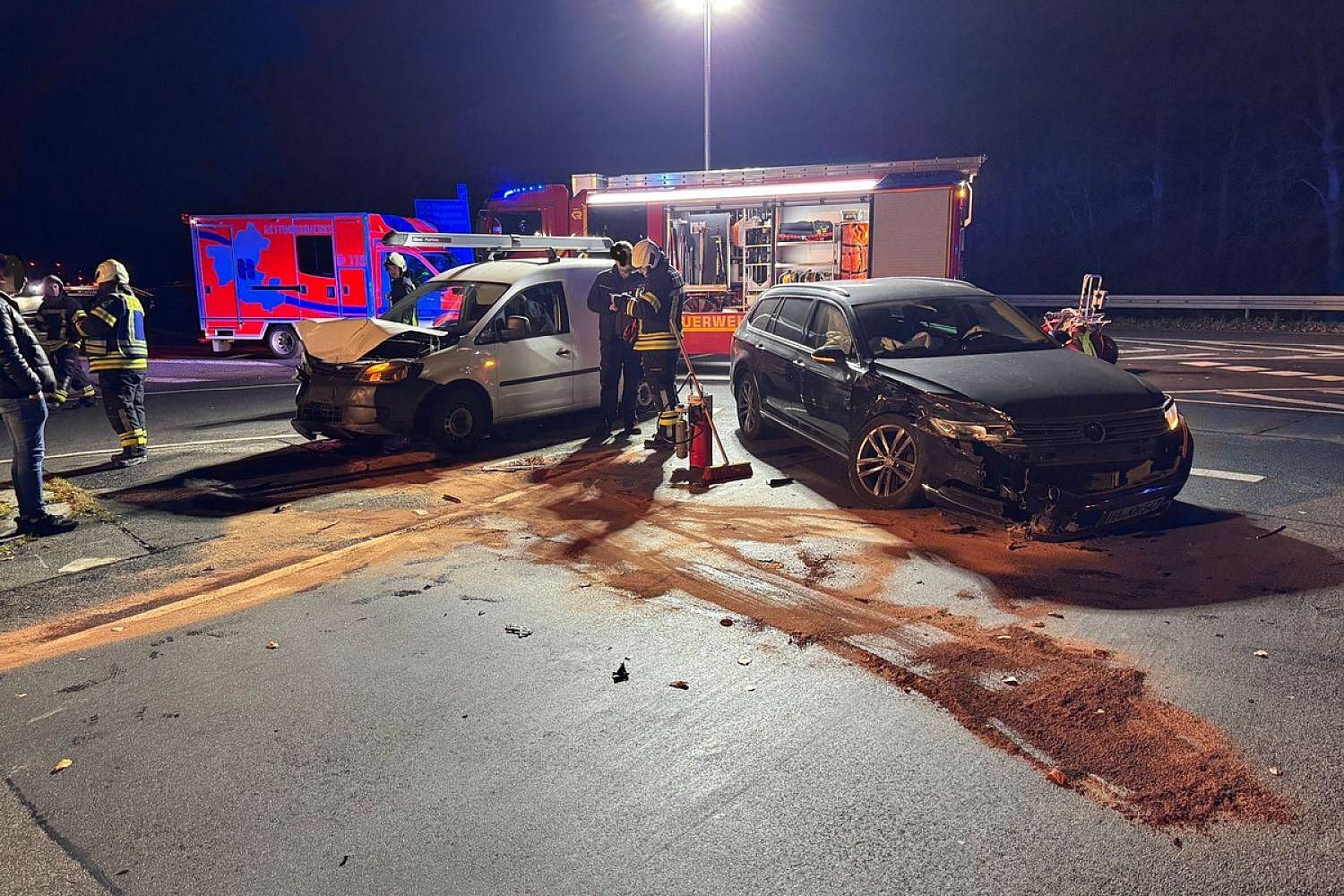 - Verkehrsunfall mit zwei Pkw im Autobahnkreuz Wuppertal Nord am Montagabend.