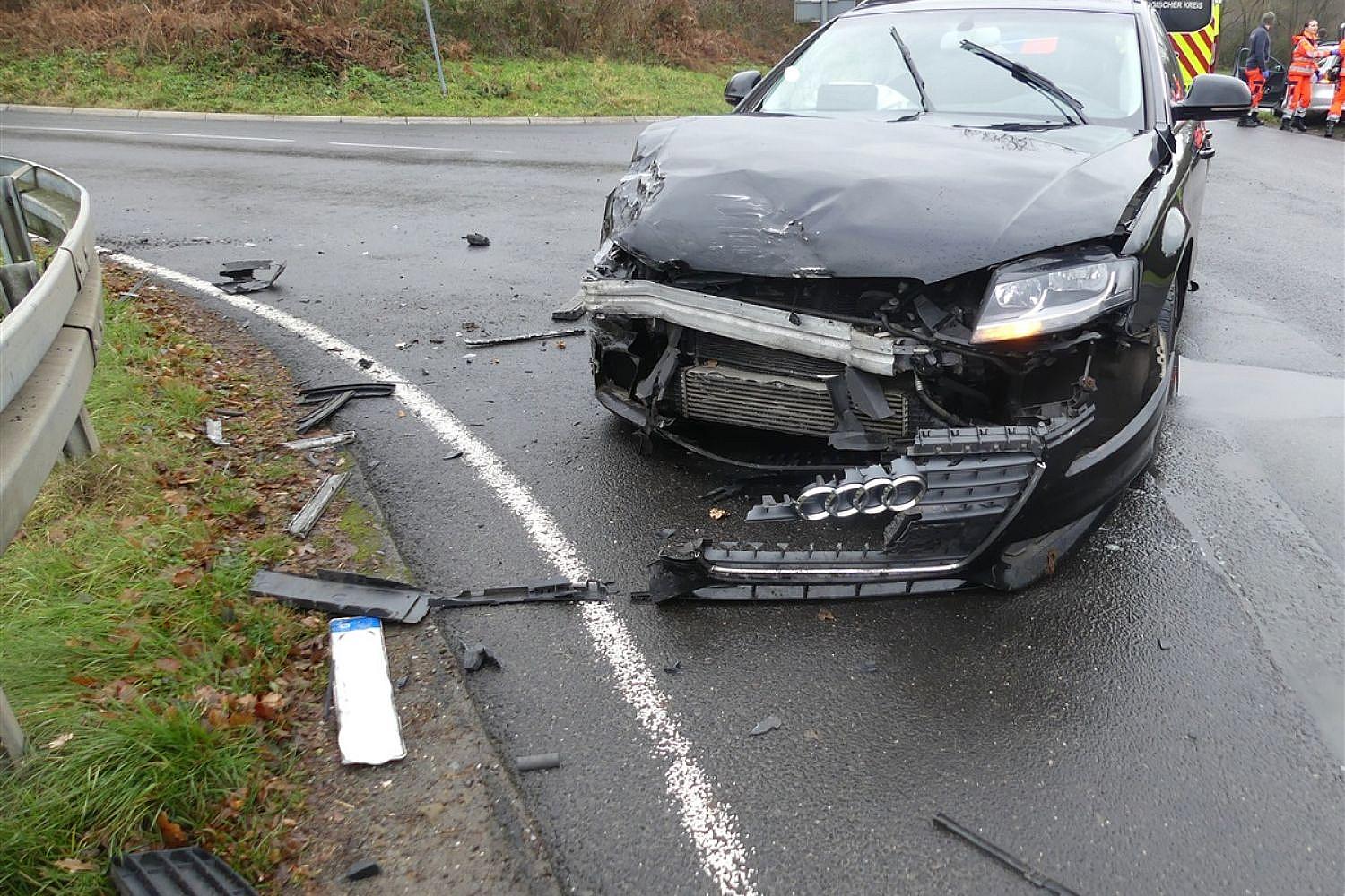 Gegen 11 Uhr kam es dabei zum Zusammenstoß mit einem VW eines 63-jährigen Waldbrölers, der in entgegengesetzter Richtung auf der Landstraße fuhr.