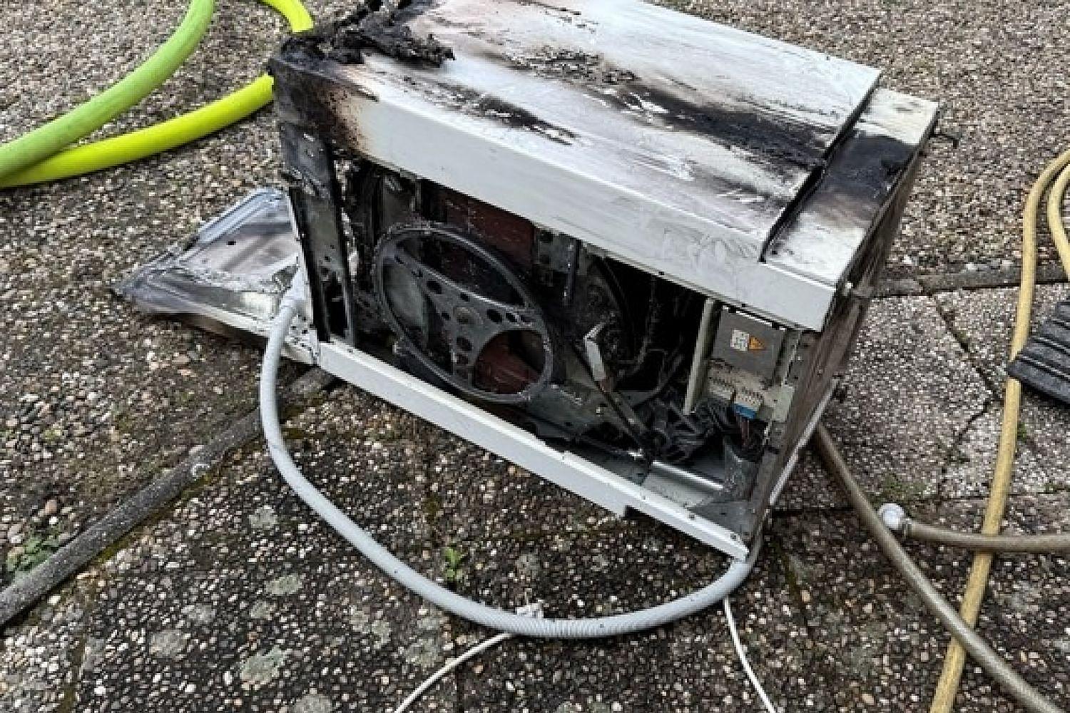 Die stark verrauchte Waschmaschine wurde anschließend ins Freie gebracht. Parallel dazu wurde der Keller mit einem Lüfter entraucht, um die Schadstoffbelastung zu senken und das Gebäude wieder zugänglich zu machen.