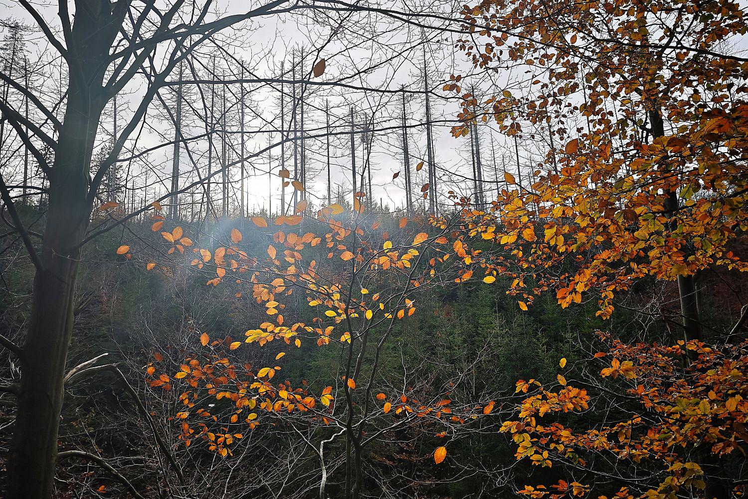 | Bildhinweis: | Herbstlicher Wald mit toten Bäumen (Archiv) |