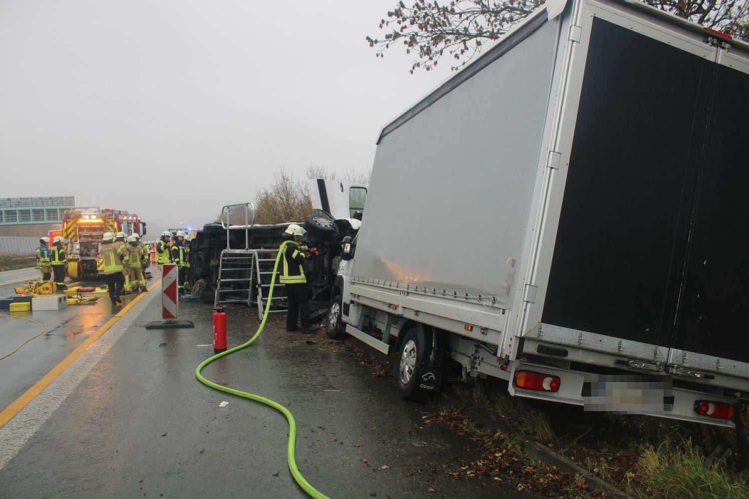 Insgesamt acht Menschen saßen in den beiden Fahrzeugen, vier von ihnen erlitten teils schwere Verletzungen. Der Mercedes Sprinter kippte durch den Aufprall auf die Seite, zwei Insassen wurden in dem Fahrzeug eingeklemmt.