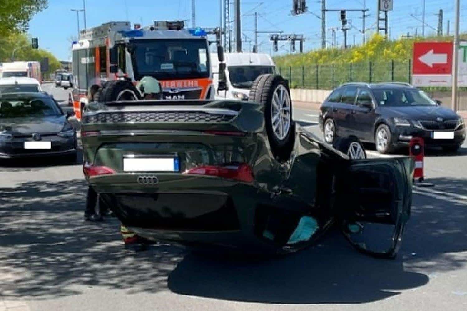 - Fahrzeug prallt gegen Bordstein, gerät auf Grünstreifen, schlägt sich um und kollidiert mit VW